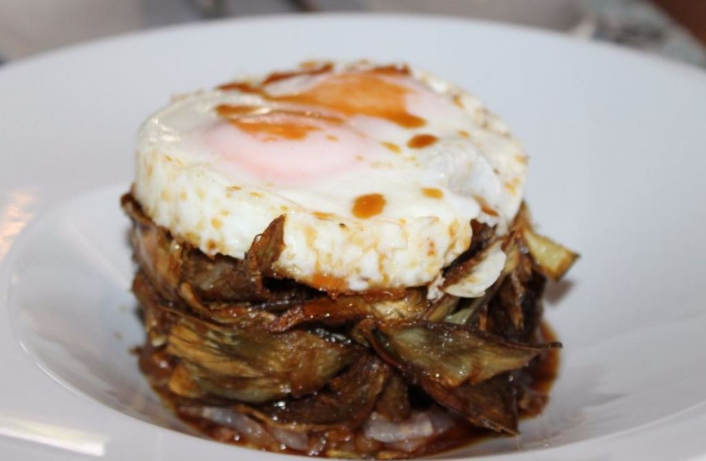 Nosotros optamos por ir a cenar, y fue realmente increíble ver atardecer desde la terraza, mientras degustábamos unas fantásticas croquetas de gamba and bleda, unas alcachofas con huevos y jamón, además de unas bravas con una presentación muy simpática y por supuesto una deliciosa fritura.